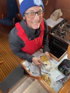 We had perfect weather all but a couple of hours of light rain and 0% upwind sailing. Great conditions to sail a fair bit of the way with often the motor ticking over to add a knot or two particularly against the constant current. overall consumption worked out at 2.6lt per hour, very frugal.